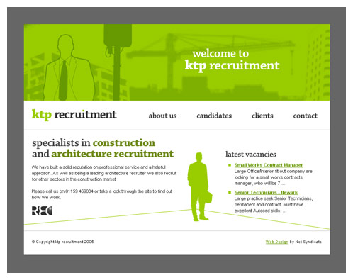 This recruitment company specialise in providing staff to the construction and architecture sectors. They required a website which would attract both clients and candidates whilst establishing them as a leader in their sector. A new identity was created for the company as there was no clear company branding in place. The site was given a distinctive, modern feel using architecture based imagery.